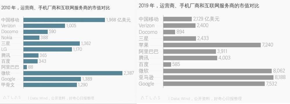 移動通信產業(yè)本來就是一條很巨大的食物鏈,成份相當復雜,自智能手機出現后,整個移動產業(yè)鏈更出現大洗牌。從上圖可見,下游互聯網(Google)和手機終端產業(yè)(蘋果)都在輕松吃肉,而上游的運營商(中國移動)和網絡基礎設備產業(yè)(諾基亞)只能辛苦地啃骨頭。