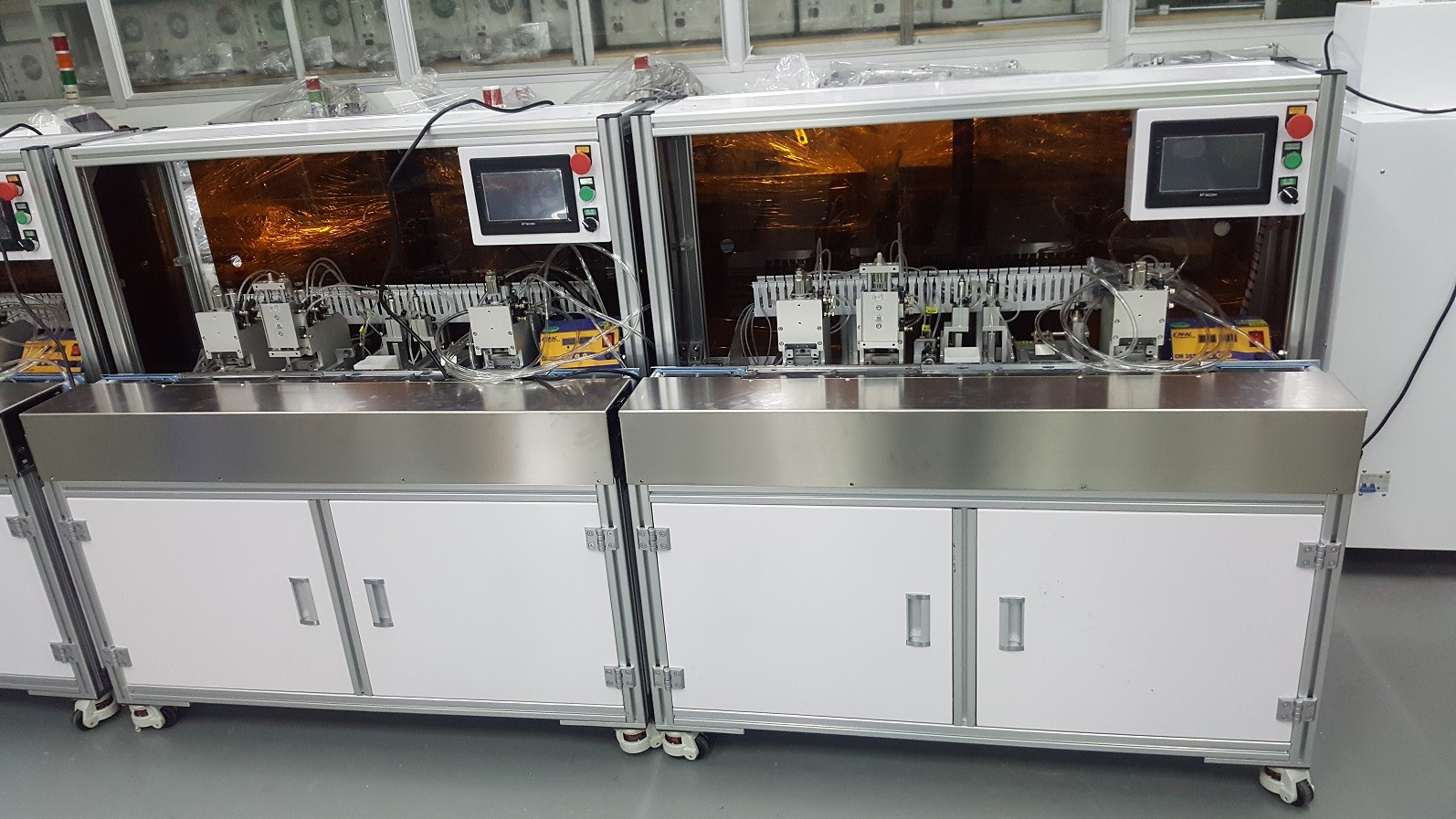 三、設(shè)備采用模塊化+分體式設(shè)計(jì),在不改變原有 設(shè)備的情況下可隨意組合并接焊接設(shè)備或自動焊接 、點(diǎn)膠、UV固化、測試等其它功能設(shè)備,以實(shí)現(xiàn) 更全面和更高的自動化程度。