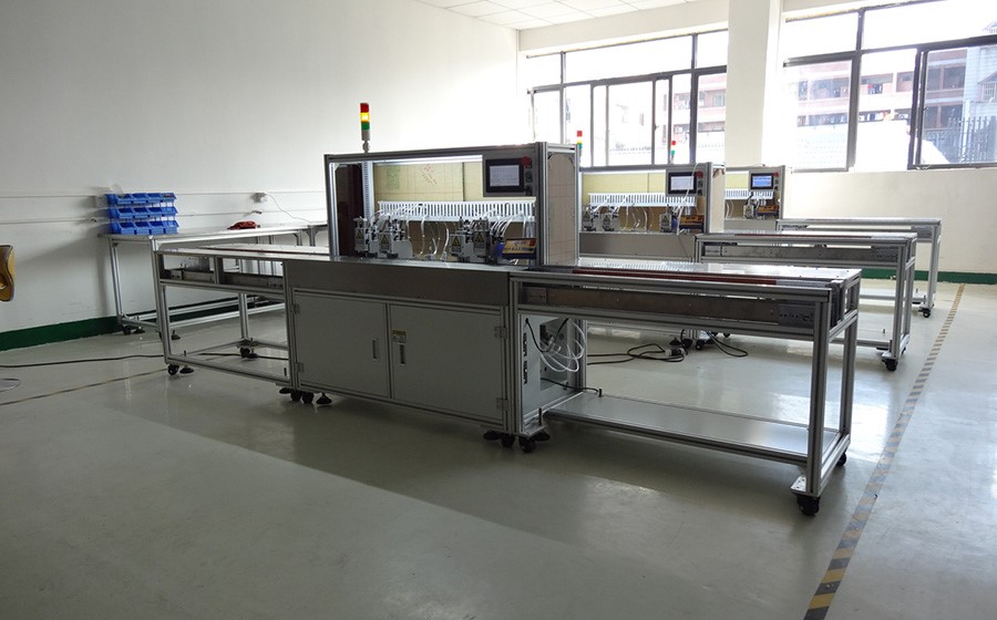 從本機(jī)剝線沾錫后夾具可直接用于焊接,焊接完成后治具可乘設(shè)備預(yù)制的回流帶回到前端擺線工位,省時(shí)省力員工不離位。